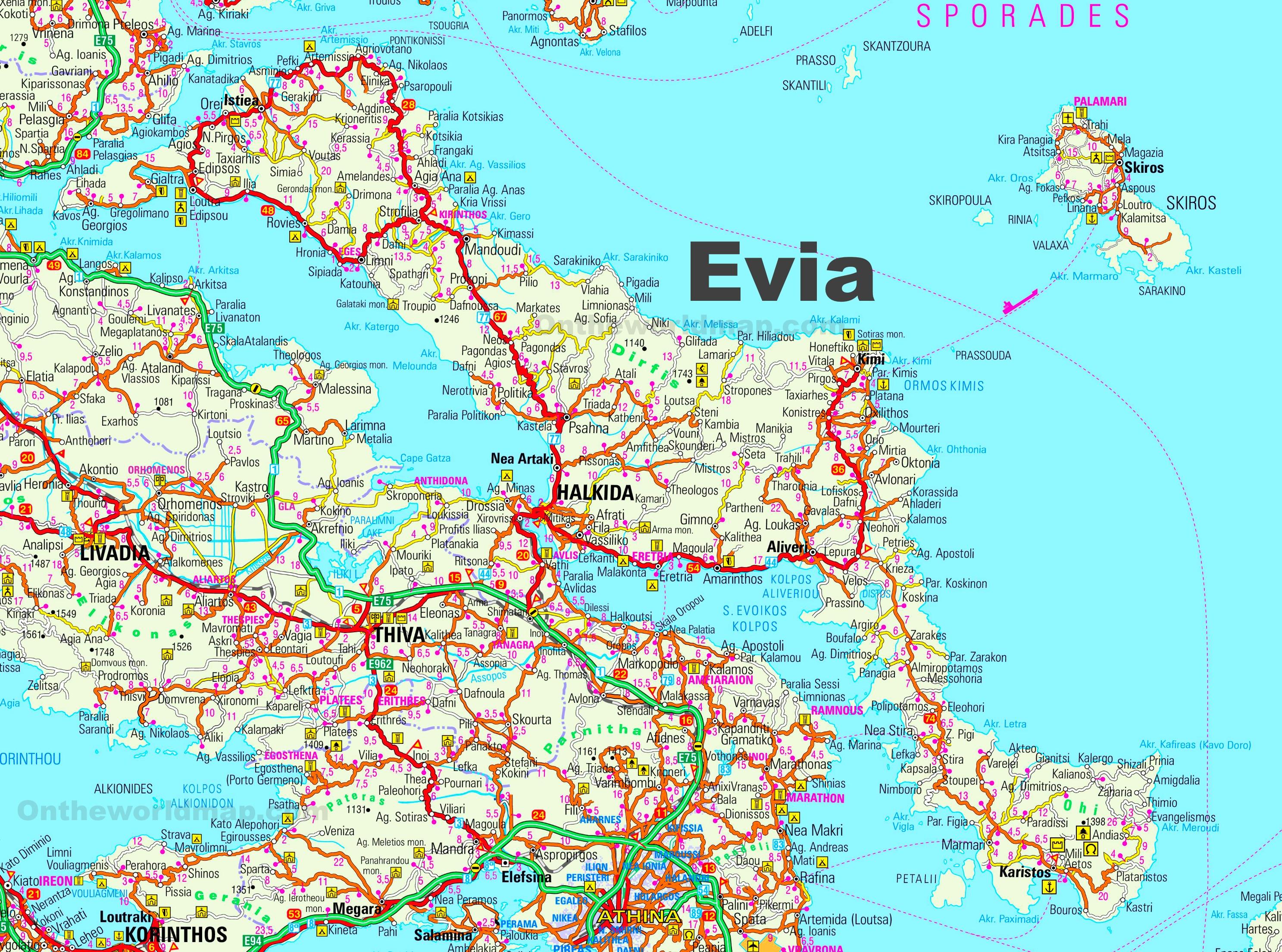Carte D'Eubée En Grèce. Eubée, Grèce carte (le Sud de l'Europe - Europe) à imprimer. Eubée, Grèce carte (le Sud de l'Europe - Europe) à télécharger.