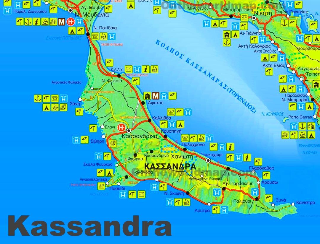 Carte de kassandra en Grèce. Kassandra en Grèce de la carte (le Sud de l'Europe - Europe) à imprimer. Kassandra en Grèce de la carte (le Sud de l'Europe - Europe) à télécharger.
