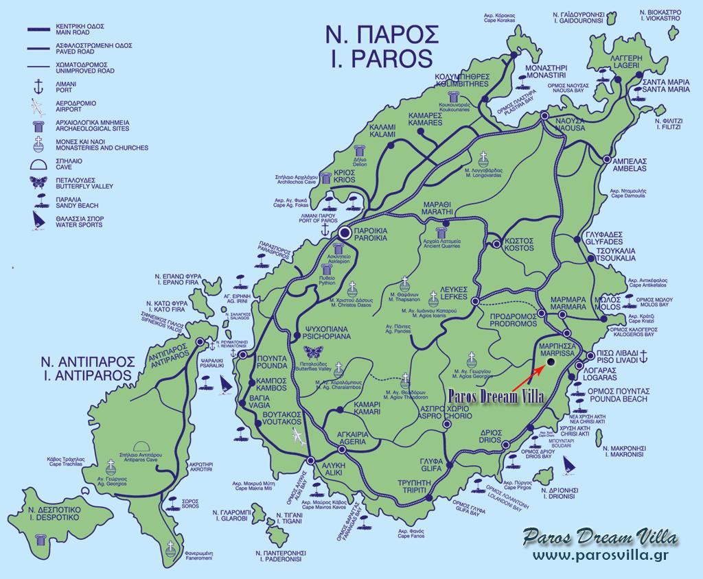 Carte De Paros, Grèce. L'île de Paros en Grèce de la carte (le Sud de l'Europe - Europe) à imprimer. L'île de Paros en Grèce de la carte (le Sud de l'Europe - Europe) à télécharger.