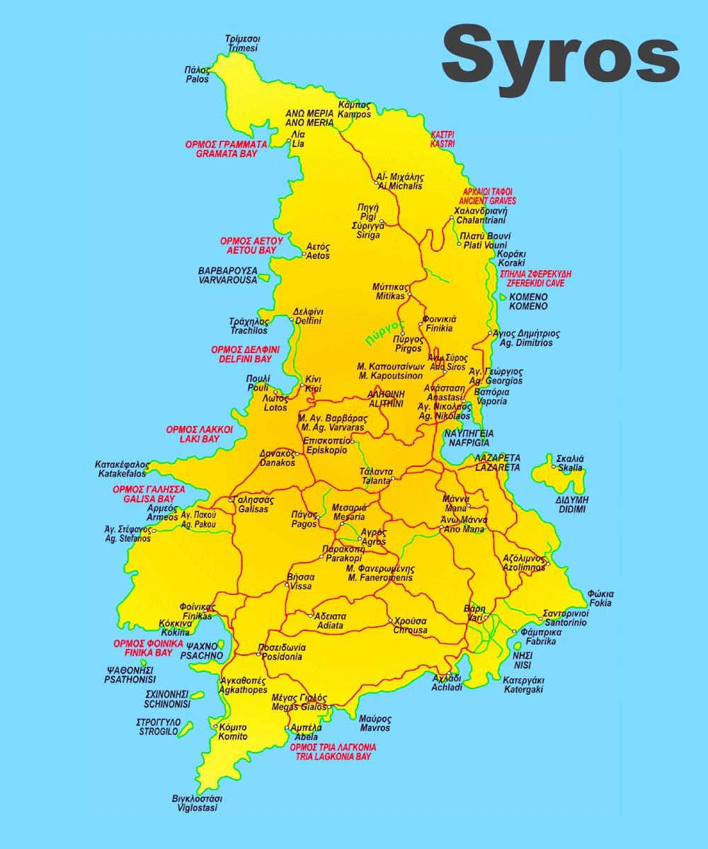 Syros carte de la Grèce